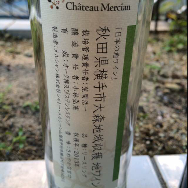 とうほくのリースリング。勝沼のchateau Mercianにて試飲し購入。くどい....