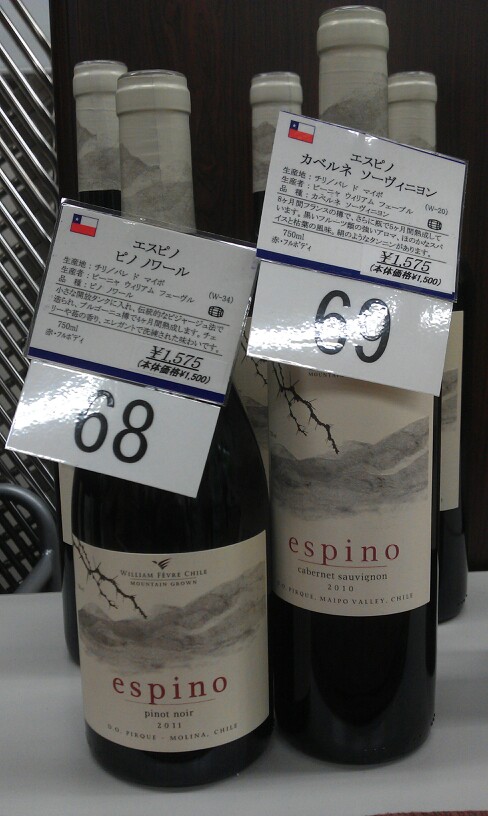 68番、espino Pinot Noir2011、価格1575円、80hlの小型のオープンタンクに入れ....