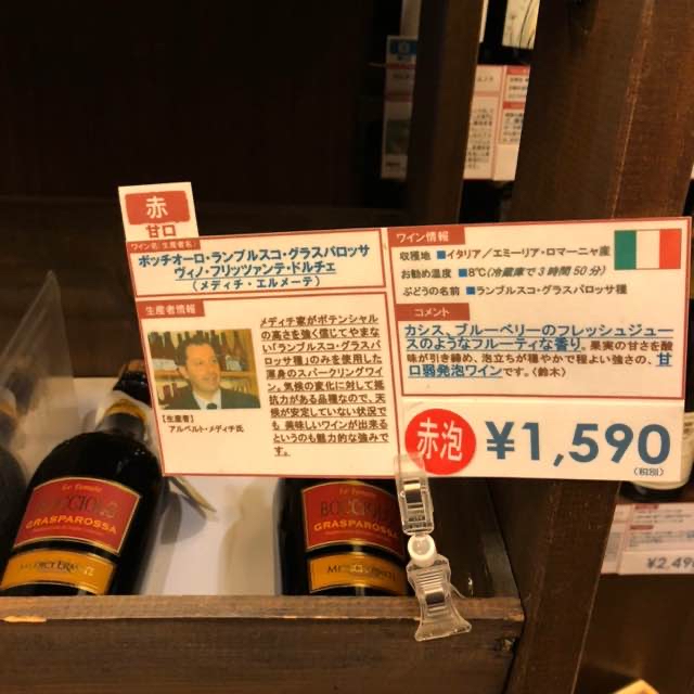 赤 甘口 酸味なし、渋味なし、微炭酸、果実味濃い、ランブルスコグラス....