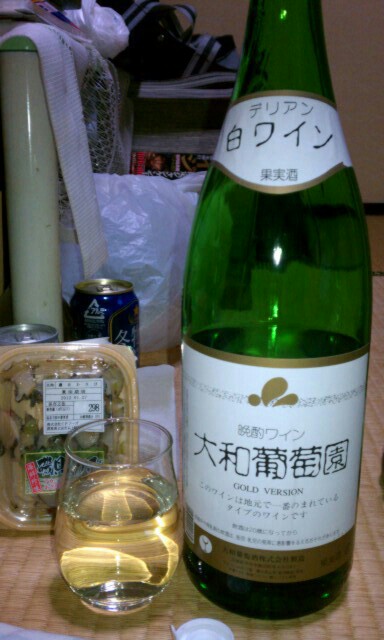 シャルドネ主体、あと甲州? 山梨自慢の一升瓶ワイン、淡いイエロー、フ....