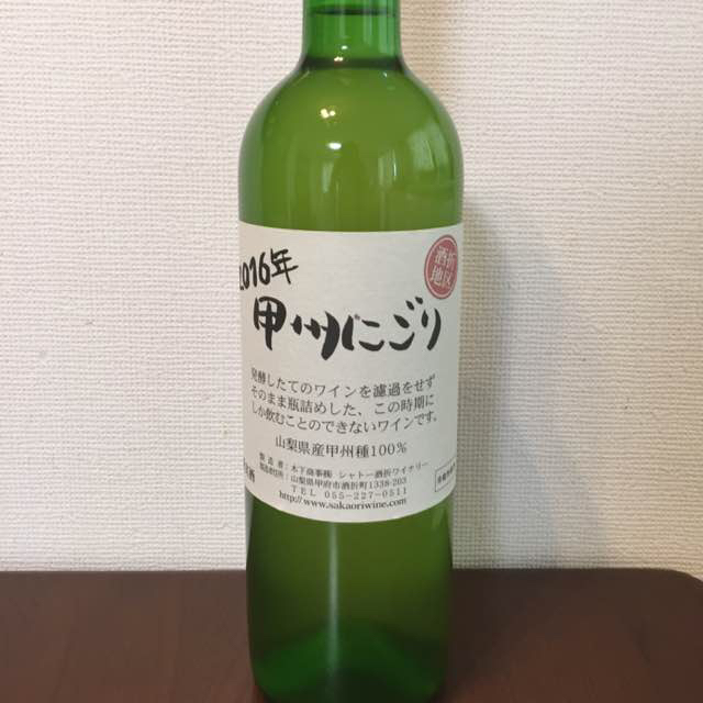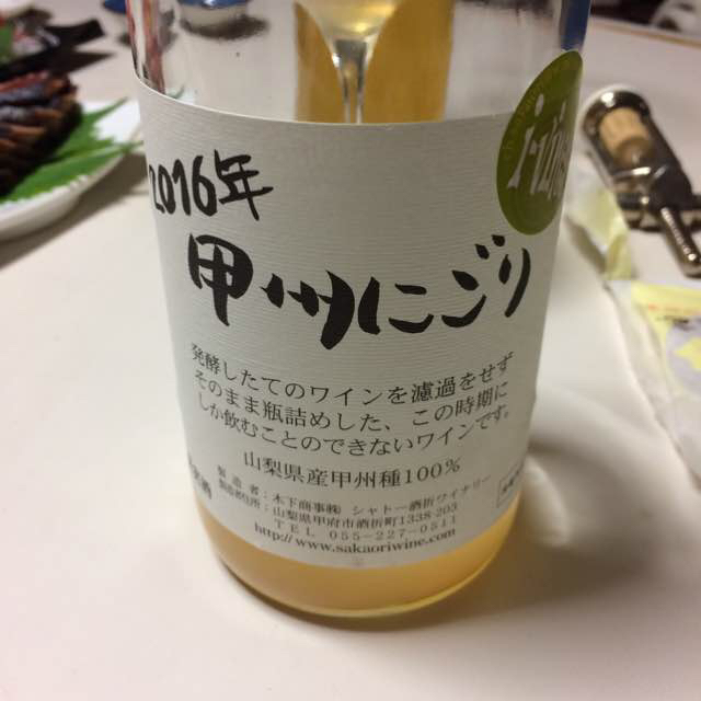 薄い、ほのかな泡、やや渋い、やや甘い、甲州種