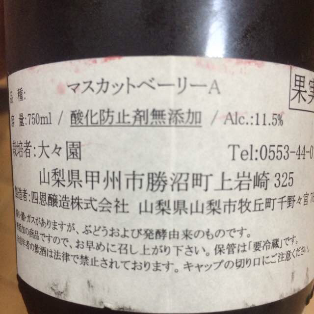 マスカットベレーA、甲州市勝沼町上岩崎、栽培:大々園(鈴木菊也)、Alc11.....