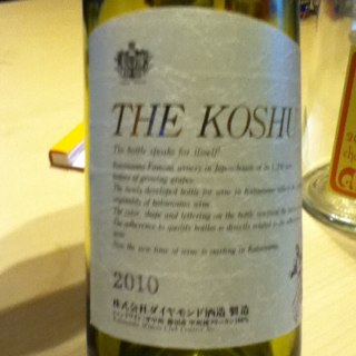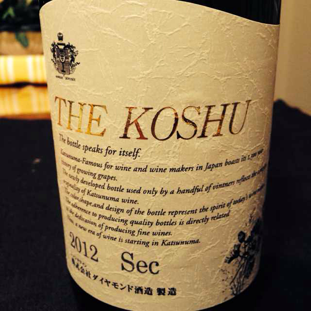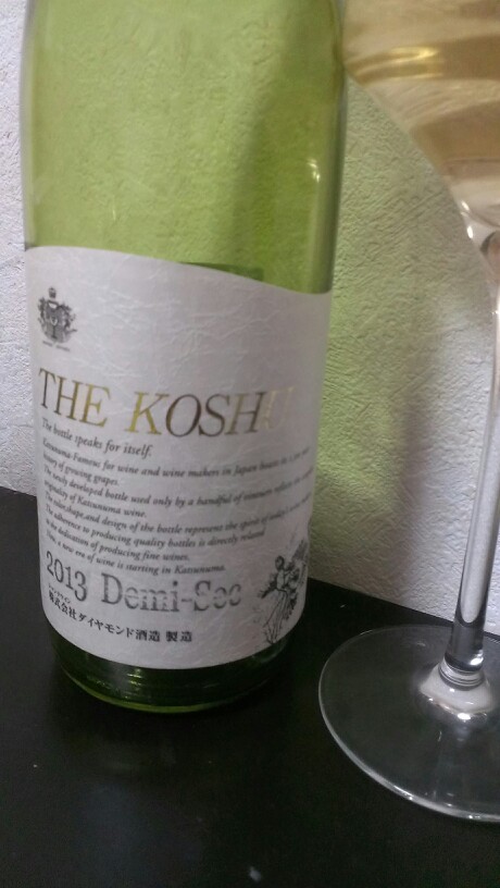 ダイヤモンド酒造の甲州白。ややピンクがかった明るいイエロー。シュール....