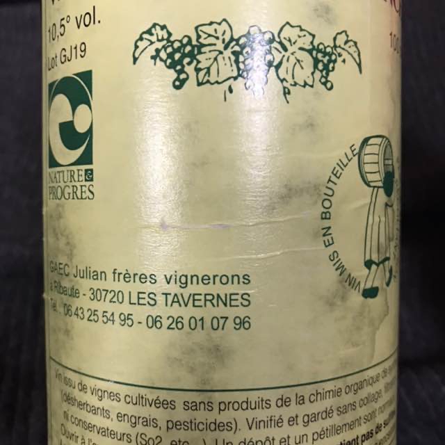 黒キャップ。Alc10.5%、ラベルのVT表記がGJ19など、Lot GJ20ではではない....