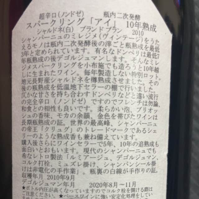 東日本大地震の際に「何か」を感じてスパークリングにしたロット。'10は....