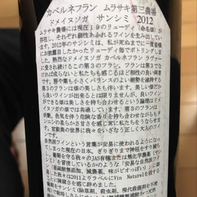カベルネフラン ムラサキ第三農場 /...