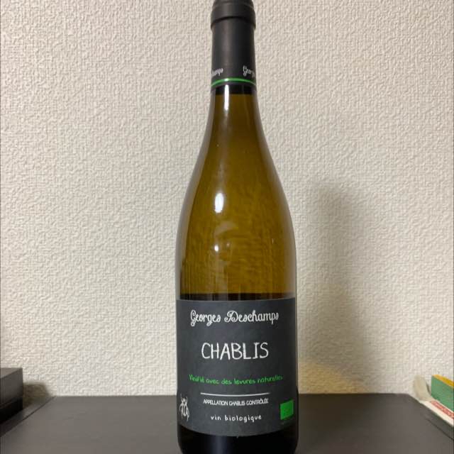 オーガニックの白ワイン。シャルドネ100%。緑がかった淡い黄色。白い花、....