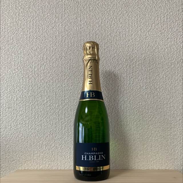 ハーフボトルのシャンパン。アンリ・ブランと読む。ピノムニエ80%、シャ....
