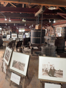 入場してほぼ一本道を長々移動させられ、1時間以上経過してやっとお目当てのワイナリーに到着しました。どうもパークを通り抜けるしか辿り着く道はないようです。しかし、入り口付近のウインドウから見える醸造施設は、本格的。ワイナリーの歴史を記した看板を読みつつ、ワイナリー、もといワイン館へと入ります。