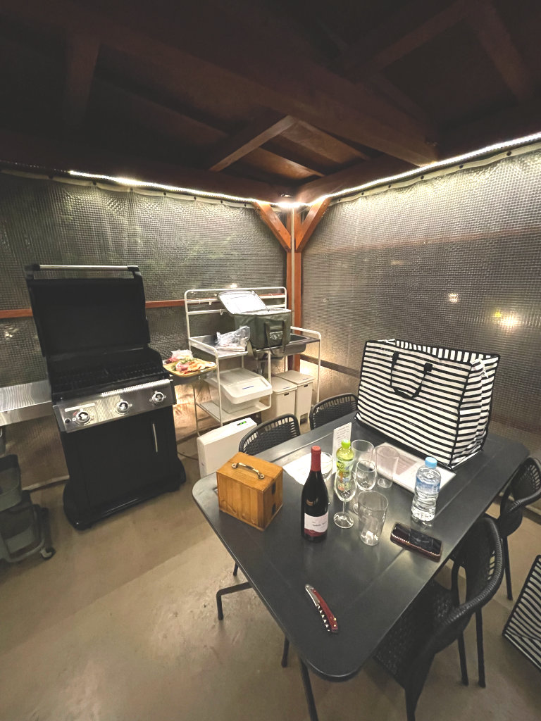 部屋の横にそれぞれ専用のBBQスペースがあり、屋根とビニールシートで風雨や寒さも防げて快適に食事ができるのもポイント高し。ただ、色々部屋との行き来が発生するので出入りが面倒という欠点もありますが。