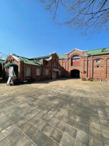 さて、腹ごしらえも済んだので、サンクンガーデンを抜けて神谷傳兵衛記念館へと向かいます。ここは元々シャトーカミヤ醸造場施設だったところで、正面の建物は旧醗酵室、向かって左手には貯蔵庫が南北に伸び、その他、地下室苗木場や洗滌室も併設されていました。