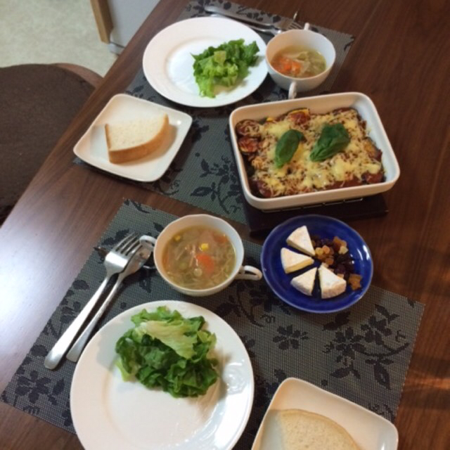 なすとカボチャのミートソース焼き。ちとカボチャが多過ぎたかな。