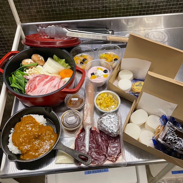 1日目とメニュー材料が変わりました。肉類もちゃんこ鍋もサラダも美味しかった!お子様メニューは焼きおにぎり、季節のポタージュスープ、フランクフルト、牛ハラミ肉、バターコーン、いちごババロア。