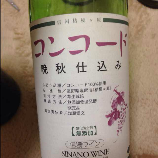 塩尻市桔梗が原産コンコード。酸化防止剤無添加。甘めの味わい。