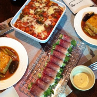 和風生ハム巻。しそ、きゅうり、大根をまいてます。