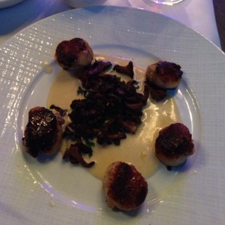 帆立とセップ茸(季節の料理)。どの料理もこってりバターソース。フランスらしい。