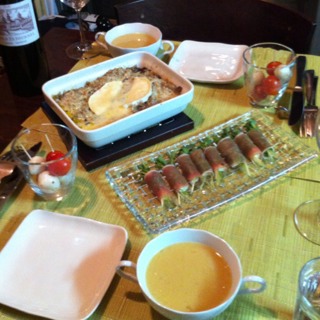 奥、きのこリゾット、我が家の定番、簡単なので作り方も紹介します!下、生ハム巻き、今日はクレソン、かいわれ、クリームチーズを巻いてる。