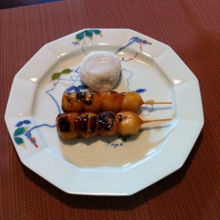 デザートは焼き団子と塩大福。門前仲町の富岡八幡宮へ初詣の帰りに『伊勢屋』で購入。今まで食べたなかで一番のみたらし団子。