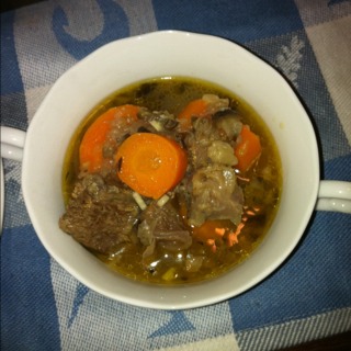 牛肉とにんじんの白ワイン煮込み/白ワインでもくつくつ煮てるので赤ワインにも合います。にんじんが甘くて、おいしい。
