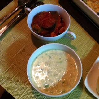 上、カポナータ。定番メニュー。いつ作っても美味しいものは安心。