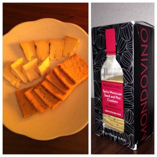 チーズ。右のがクラッカーの箱なのですが、これが美味しい!池袋西武の酒売場にてチーズとセットで購入。