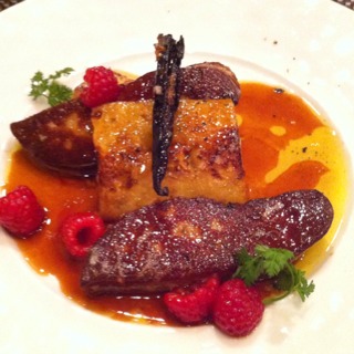 前菜1、フォワグラとパイナップルソテー。香りづけにバニラビーンズがのってる。