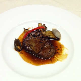 メイン2、牛フィレ肉マディラ酒ソース。ワインがほぼ赤なので、どうしても肉系に。。。