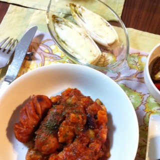 上、チコリのオーブン焼き。塩コショウしてチーズを載せて焼いただけだけど美味。