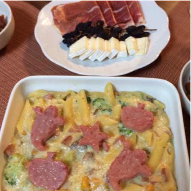 クリームグラタン、ハロウィンバージョン。厚切りハムを型抜きしただけで簡単!