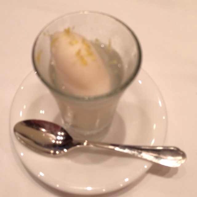 デザート前に。レモンシャーベット。お口直し的な存在。