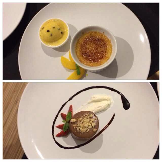 デザートだけ西洋風。クレームブリュレとチョコレートムース。