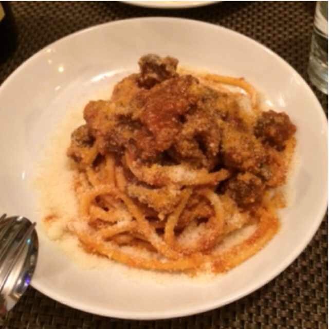 カテドラータのブカティーニ(牛肉のラグー)、パスタだと思わずに注文^^;でも美味しかった。
