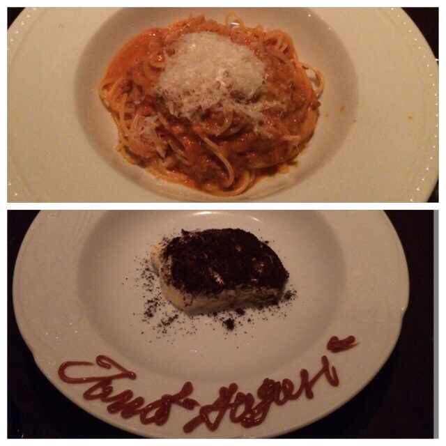 ボロネーゼスパゲッティ。ティラミス。Tanti Auguri、イタリア語の誕生日おめでとう!