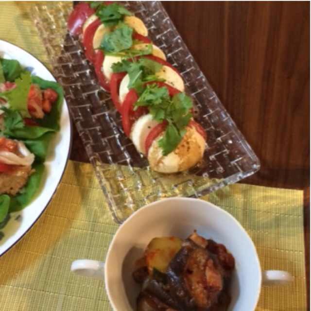 定番のカプレーゼとカポナータ。夏なのでトマトを多用。