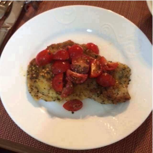 ミラノ風カツレツトマトバジル味。カツレツもいつ食べても美味しい。