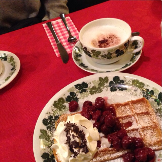 チェリーとキルシュのワッフル。お店を変えて。旅行中初のデザートに辿りつけて美味しくて満足^^;