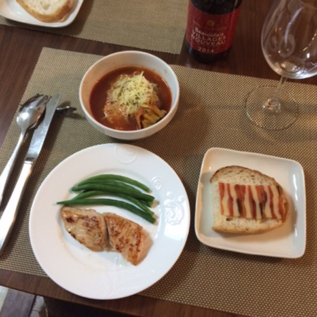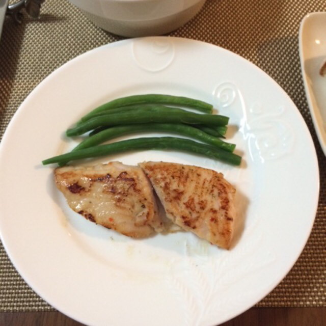 白身魚バジル風味。いんげんを添えて。