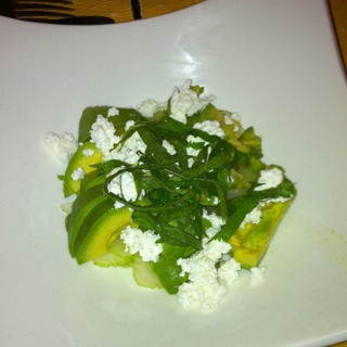 アボカドサラダ/今回はセロリの薄切り、しそせん切り、カッテージチーズを一緒に盛り合わせる。