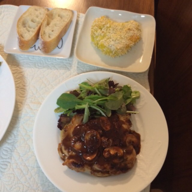 上、さつまいもコロッケ、スイートポテトみたいな感じ。下、チキンソテーチョコレートソース。ソースがほんのりチョコレート味。