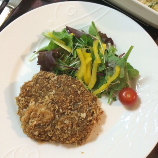 ネタがゆるくできてしまって、小麦粉→卵→パン粉に固めるのに少し苦労したけど、なんとか形になりました〜
