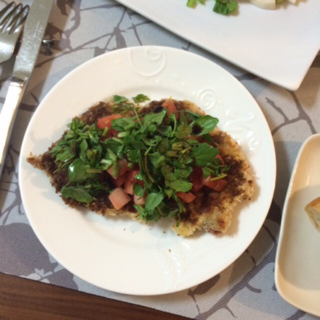 トマトとクレソン、レモン汁、バルサミコをトッピングとソースに。