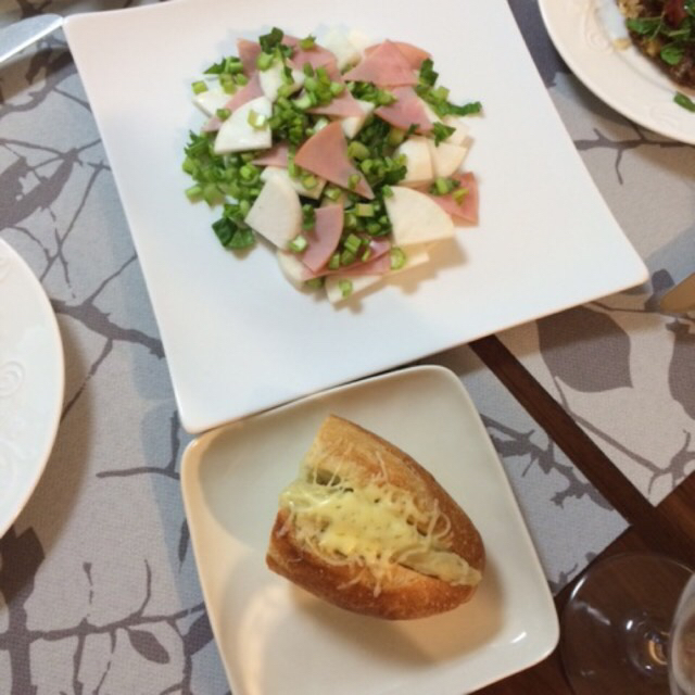 上、かぶサラダ、かぶとハムを切って、ドレッシングかけただけ。下、アンチョビポテトパン、少し前に作って美味しかったのでリピート。