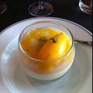 Verrine with litchi,passion and pana cota 前菜+メイン+デザートで36ユーロ、あとカフェオレを注文
