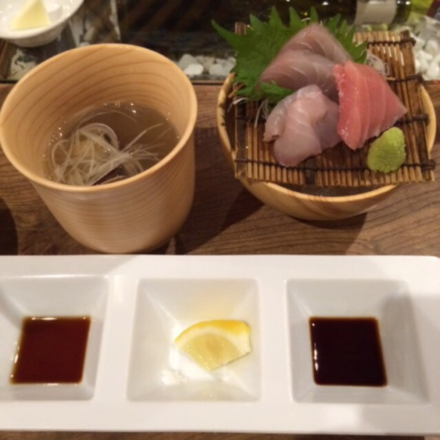 左上、あさりのお吸い物。右上、伊根漁港より本日のお造り。