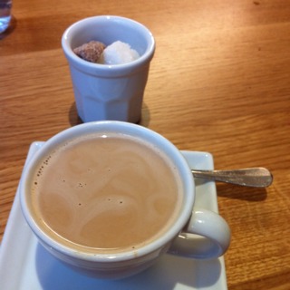 カフェオレ。上の前菜+メイン2皿で23.80ユーロ。