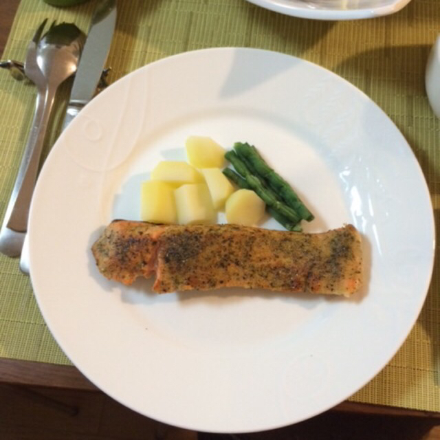 サーモンのハーブムニエル、シンプルで素材の味が生きて美味しい。