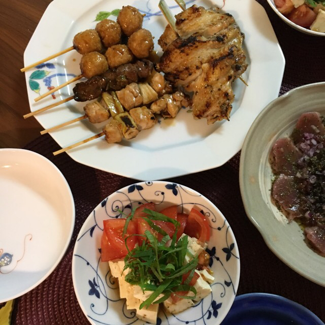 焼き鳥は買ってきました…。和食系なので、明太子パン。
