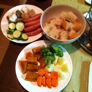 11月に入ったのでチーズフォンデュ!冬の間に毎年、数回はします。チーズは勿論、エメンタールとグリュイエール。美味しい!