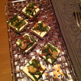 クリームチーズの和風仕立て。みょうがとしそをきざんで載せ醤油をちょびっとかける。