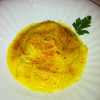 からすみのスパゲティ、お店の看板メニューでピザもある